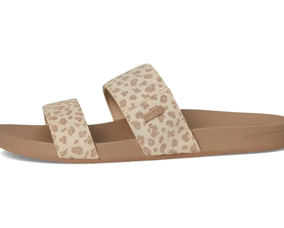 - From brunch dates to boardwalk strolls, the Reef® Vista Stevie elevates your everyday style and comfort level with a cushy and contoured Vista polyurethane insole. This slip-on style sandal features a plush suede upper, soft jersey lining with dual straps, open toe silhouette, and a lightweight, durable rubber sponge outsole.
