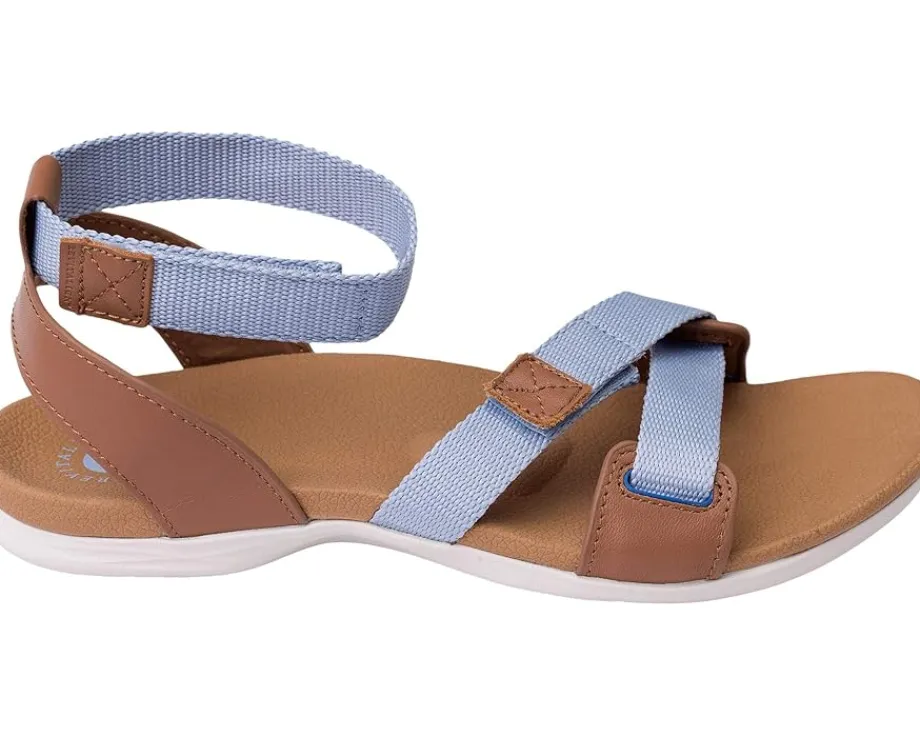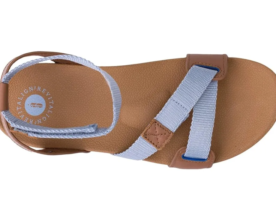 - The Revitalign™ Webbed Sandal features an orthotic grade footbed approved by American Podiatic Medical Association to help prevent and alleviate Plantar Fasciits, knee and back pain. Easy hook and loop ankle and vamp construction to customize your fit.