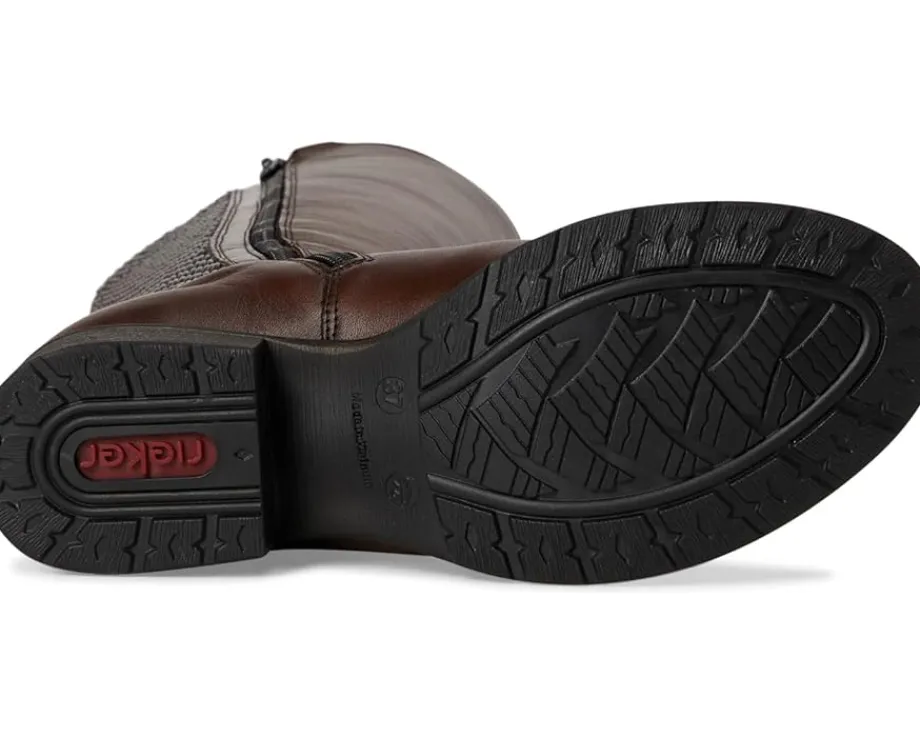 - The Rieker® Z9591 tall leather boot boasts a stretch back panel for a comfortable fit.