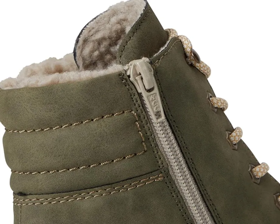 - Comfortable and practical! Freezing is a foreign word with these Rieker® Sabrina 20 lace-up boots. Thanks to the stitch-down construction, this shoe is particularly durable and flexible. The clever combination of lacing and zipper provides optimal support and makes the shoe easy to put on and take off. The padded shaft edge perfectly rounds off the modern design. The sole is grippy and ensures good traction at all times. The padded and removable insole offers comfort and functionality day after day. The fluffy warm lining provides long-lasting protection against the cold and the water-repellent upper is effective against wetness and wind. All in one – top!