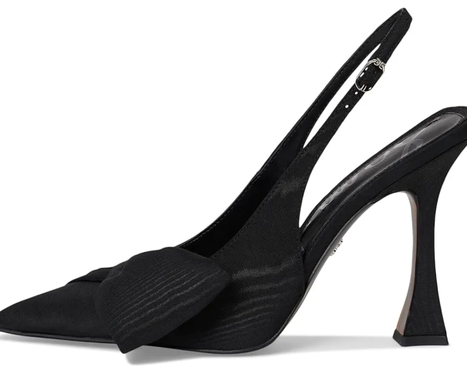 - Romantic meets refined, the Sam Edelman® Onia Slingback Shoes stun with flared heels and a feminine oversized bow, perfect for making an entrance. These heeled sandals are made of a synthetic resin upper, polyester insole, and faux leather lining. The slingback strap ensures a secure fit. Add a chic look to your outfits with these slip-on heels.