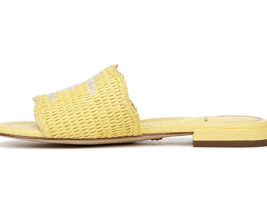 - Be it your casual poolside party or a brunch date, the Sam Edelman® Evette Sandals are sure to spice up your look while treating your feet with an extra dose of comfort. Coming in a slip-on design, these easy-to-wear sandals feature a woven fabric upper with an embroidered logo and branding, a breathable synthetic lining, and a padded polyurethane footbed.