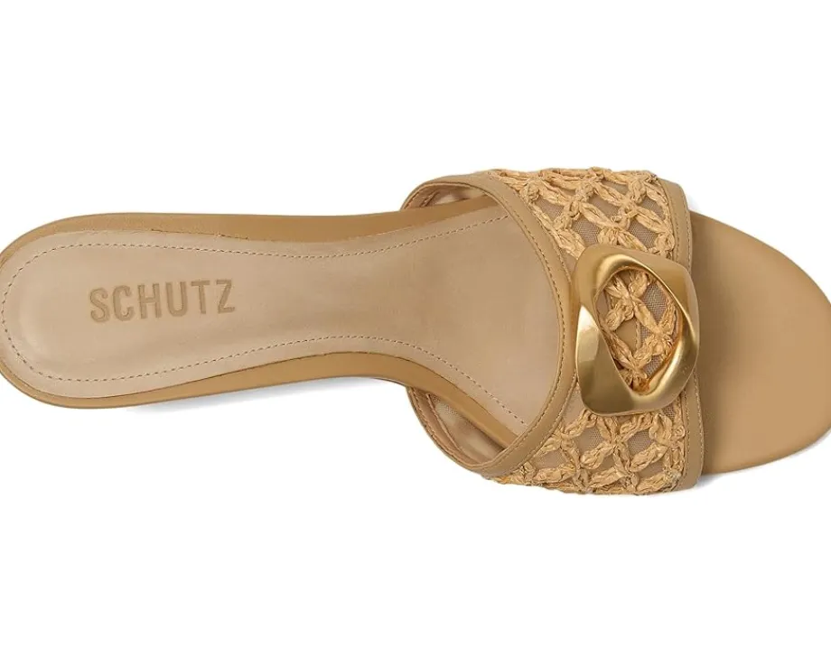 - Add a touch of luxury and uniqueness to your shoedrobe by opting for the Schutz® Olga Kitten Embroidery sandals. Featuring a kitten heel, these slip-on sandals provide both elegance and comfort for all-day wear.