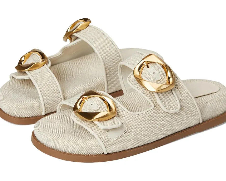 - Get the best of both comfort and style wearing Schutz® Olga Sporty Sandals. The open-toe, slip-on style sandals are designed with a leather upper, linen fabric lining, and a comfortable foam insole. The double-buckle detail adds an exquisite touch.