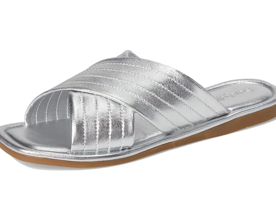 - Shimmer, slide, and shine-the courage sandal has arrived! Slip into effortless elegance wearing the Seychelles® Courage Metallic Leather Slide Sandal. Featuring a luxe leather upper that gleams in the light, these chic cross-band slides elevate any outfit with ease. The PU lining and faux leather insole provide a soft, cushioned feel, while the durable synthetic rubber outsole ensures a steady step. Designed for easy slip-on wear, they’re the go-to choice for seaside strolls, city escapades, or leisurely farmers’ market visits.