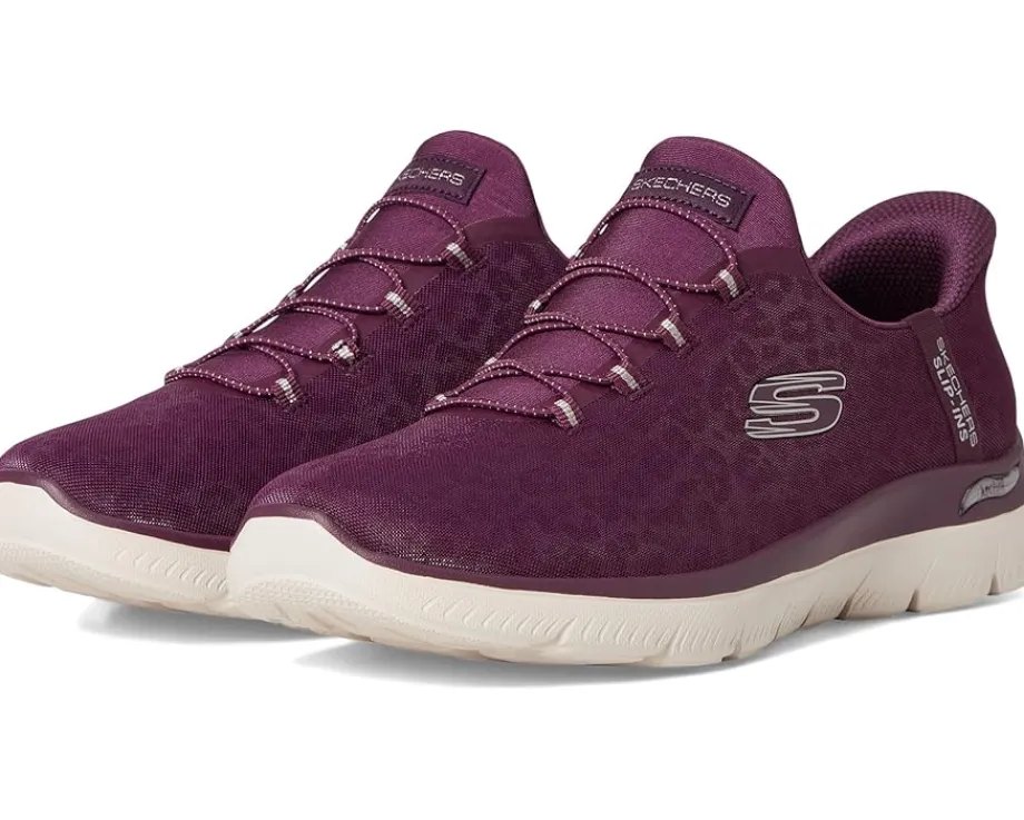 - Enjoy an easy-on brand favorite, now with our famous arch support, wearing SKECHERS® Arch Fit® Summits Hands Free Slip-Ins®. Designed with our exclusive Heel Pillow®, this vegan slip-on has been granted the APMA Seal of Acceptance and features a leopard print mesh upper with fixed stretch laces and a removable air-cooled Arch Fit® insole.