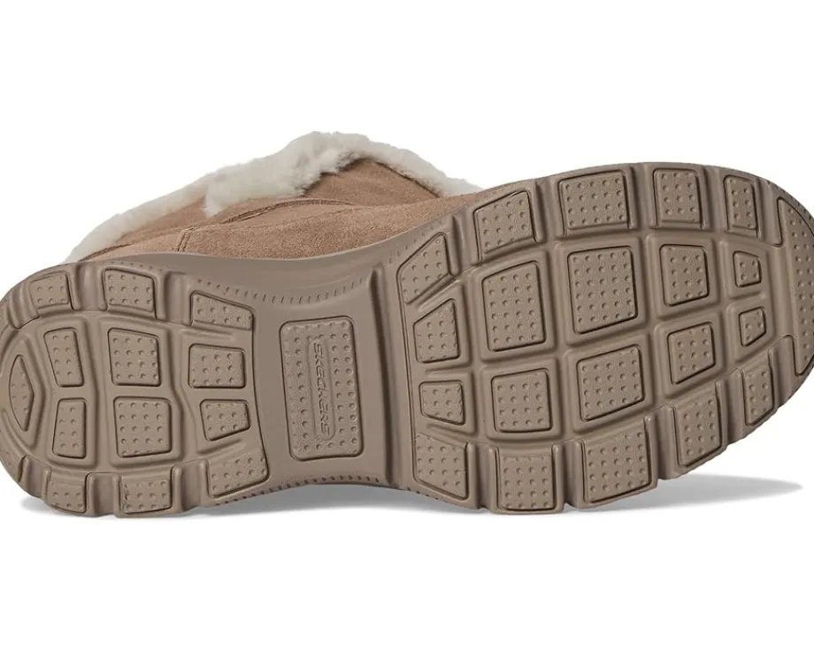 - Simply step into the season with effortless cozy comfort wearing SKECHERS® Easy Going – Dreamers Luxe Vibe Hands Free Slip-ins. Designed with the exclusive Heel Pillow™, this boot features a 3M® Scotchgard® treated suede upper with faux fur trim and lining, wrapped buckle detail and a cushioned Skechers Air-cooled Memory Foam® insole.