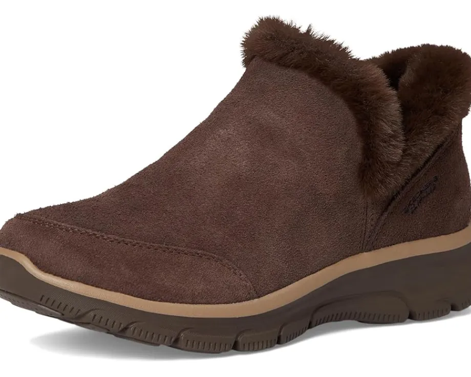 - Get warm comfort and smart versatile style instantly with the SKECHERS® Easy Going – Fall Feeling Hands Free Slip-ins. Designed with a Heel Pillow®, this slip-on bootie features a 3M® Scotchgard® treated suede upper, plush faux fur trim & lining, and a cushioned Skechers® Air-Cooled Memory Foam® insole. The Skechers® Hands Free Slip-ins® allow for an easy fit, while the Relaxed Fit® offers a roomy comfort fit at toe and forefoot.