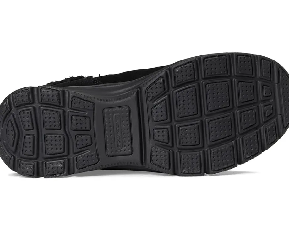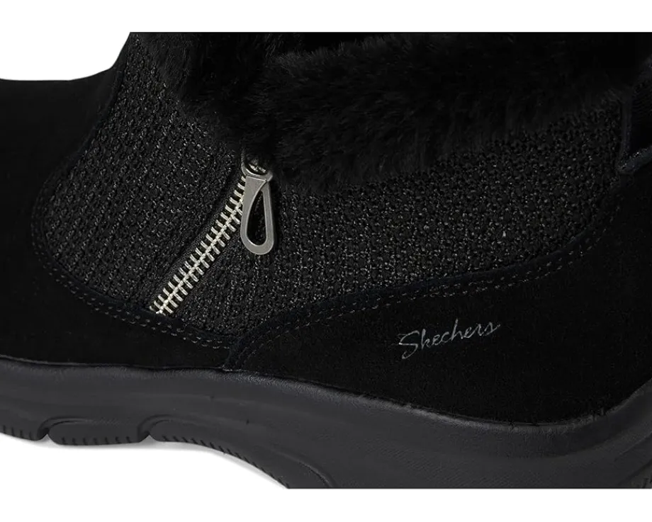 - Style that feels like a hug, SKECHERS® Easy Going – Gentle Fall. Designed to keep you warm and on-trend, this ankle-high beauty features a soft suede and sweater knit upper accented with a plush faux-fur trim that screams cozy season goals. The zippered side closure makes slipping in and out a breeze, while the moc toe and wedge heel add just the right touch of laid-back sophistication. Inside, the SKECHERS Air-Cooled Memory Foam® cushioned insole hugs your feet in unmatched comfort, and the durable rubber outsole ensures grip with every step.
