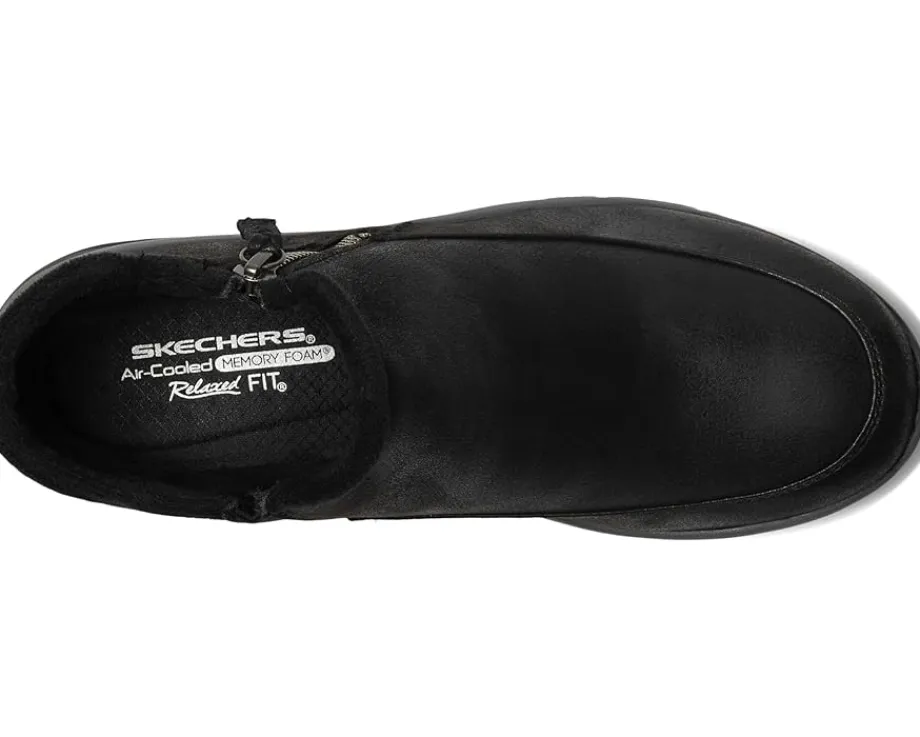 - Treated with 3M® Scotchgard® to resist water and stains, the SKECHERS® Easy Going – Into Fall bootie is a cute cool weather style. This water-repellent ankle boot features smooth vegan leather upper with a faux fur trim, side zip closure, and a Skechers Air-Cooled Memory Foam® insole.