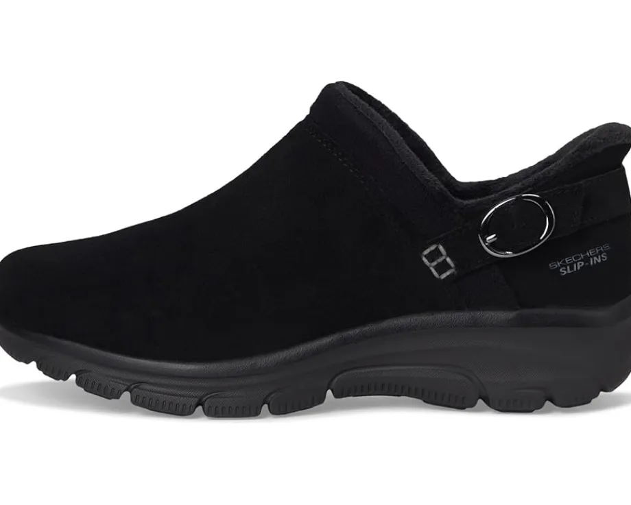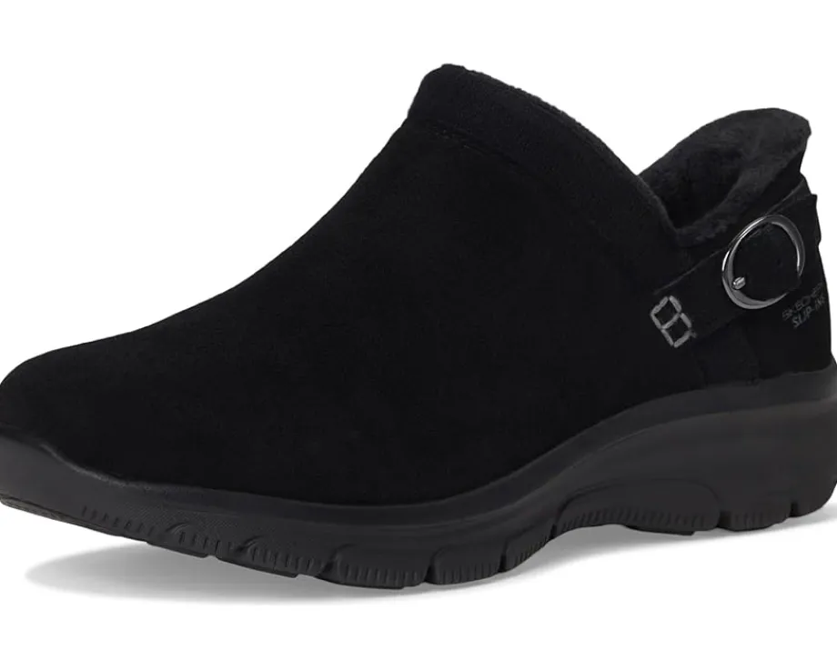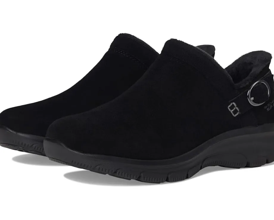 - Get into the season with effortless cozy comfort wearing SKECHERS® Hands Free Slip-ins® Relaxed Fit®: easy going – modern time. Designed with the exclusive Heel Pillow™, this buckle detailed fashion bootie features a 3M® Scotchgard® treated vegan leather upper with faux fur lining and a cushioned SKECHERS Air-cooled Memory Foam® insole.