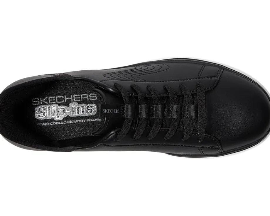 - Convenience meets effortless style in these SKECHERS® Eden Lx-Royal Stride Hands Free Slip-Ins. Effortless entry with hands-free Slip-Ins, featuring an exclusive Heel Pillow™ that ensures your foot stays securely in place. Enjoy the ultimate comfort of Air-Cooled Memory Foam® cushioned insoles, perfect for all-day wear. The synthetic upper and outsole provide durability, while the textile lining and insole add extra softness. With a convenient lace-up closure, these shoes offer a secure fit every time.