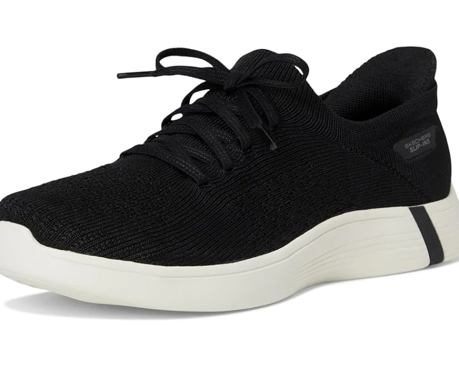 - The SKECHERS® Performance On-The-Go Hands Free Slip-ins Swift w/ Knit Fit redefine convenience with a modern twist. Crafted with a sleek polyester knit upper and soft polyester lining, these slip-ons feature fixed laces for a ready-to-go look, while the innovative Heel Pillow™ ensures your foot slides in and stays perfectly in place. The lightweight ULTRA GO® cushioned midsole delivers responsive comfort with every step, and the EVA insole and outsole offer all-day support and traction without the bulk. Designed for life in motion, this pair blends sporty-chic appeal with next-level ease, making them perfect for quick errands, travel days, or everyday wear.