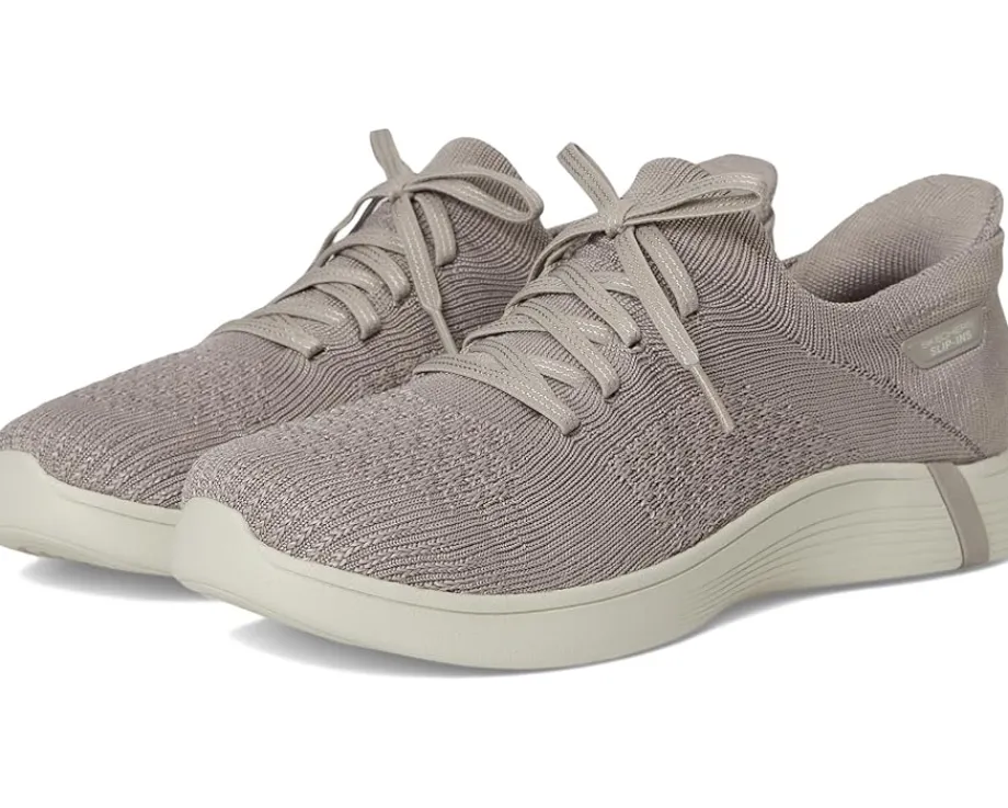 - The SKECHERS® Performance On-The-Go Hands Free Slip-ins Swift w/ Knit Fit redefine convenience with a modern twist. Crafted with a sleek polyester knit upper and soft polyester lining, these slip-ons feature fixed laces for a ready-to-go look, while the innovative Heel Pillow™ ensures your foot slides in and stays perfectly in place. The lightweight ULTRA GO® cushioned midsole delivers responsive comfort with every step, and the EVA insole and outsole offer all-day support and traction without the bulk. Designed for life in motion, this pair blends sporty-chic appeal with next-level ease, making them perfect for quick errands, travel days, or everyday wear.