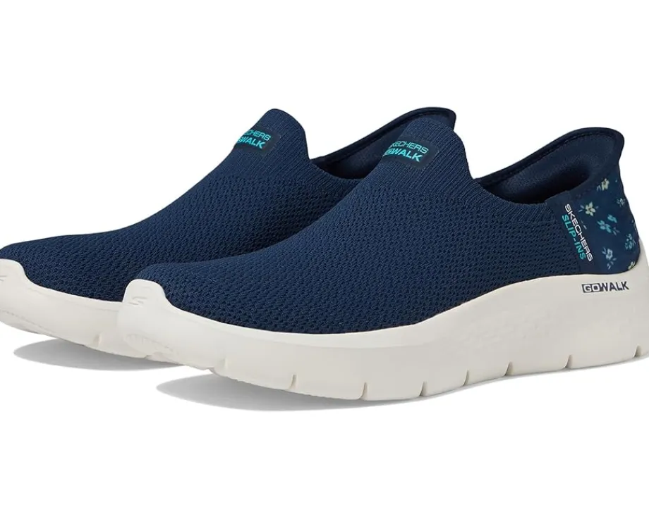 - Feel comfort like never before when you step out wearing the SKECHERS® Performance Go Walk Flex Sunset Rose Hands Free Slip-Ins. Topped with a knit mesh upper with a laceless design and a floral print on the heel counter, these shoes offer next-level comfort with its lightweight and responsive ULTRA GO® cushioning and Skechers Air-Cooled Memory Foam® cushioned comfort insole. With the Multi-surface stabilized and flexible traction with Flex Pillars™, the sneakers are ideal for cross-training activities.