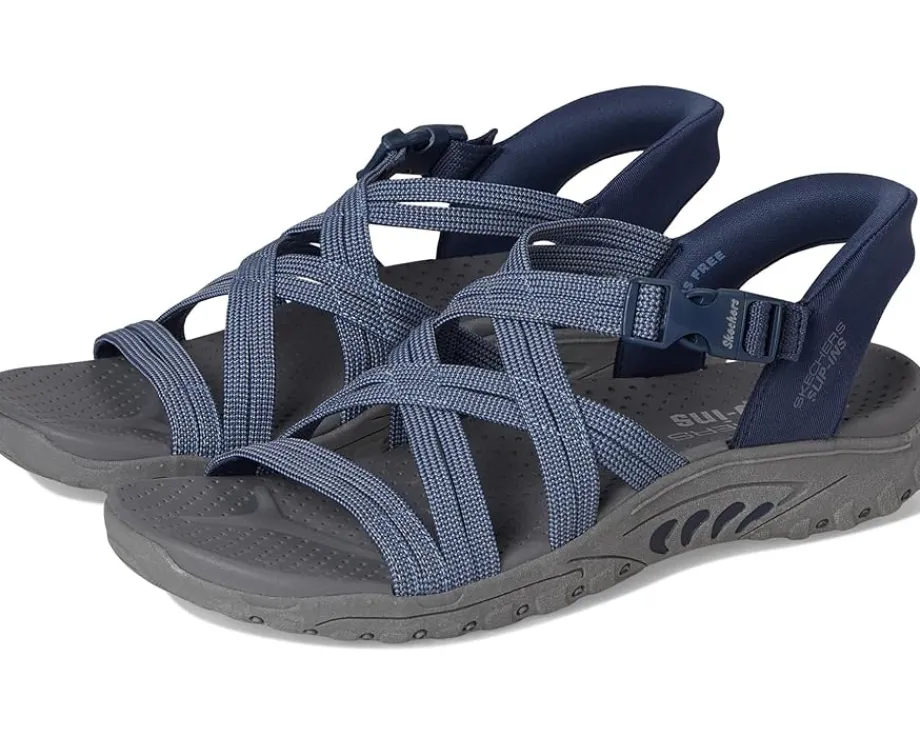- Ease back with style and stretchable comfort in the SKECHERS® Reggae – Morning Light. This vegan sandal features a woven stretchy fabric upper with a quick closure buckle and a supportive Reggae® midsole.