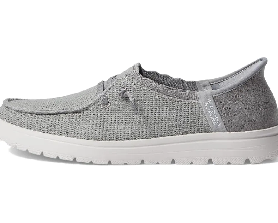 - Designed to offer utmost comfort, the SKECHERS® Venice – Coastal Groove Hands Free Slip-Ins shoes are a must-have in your wardrobe. The slip-on style shoes have a round-toe design, lace-up closure for a custom fit, and a breathable construction. The low-top shoes have recycled knit upper, breathable fabric lining, air cooled memory foam footbed, and shock-absorbing midsole for extra comfort.