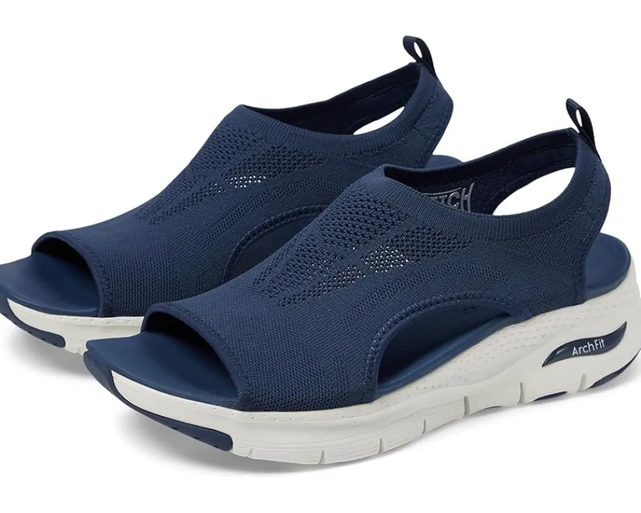 - Supportive all-day comfort and breezy style meet in the Skechers Arch Fit – City Catch. This pull-on sandal features a breathable Stretch Fit engineered knit upper and Arch Fit® cushioned footbed.