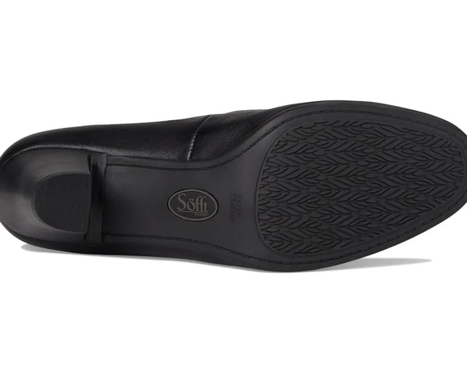 - Conquer the ramp wearing the Sofft® Lucinda. Crafted from leather upper, faux suede lining, and EVA insole, this pair of shoes features moc toe, microfiber sock with cushion, mid block heel, and slip-on construction.