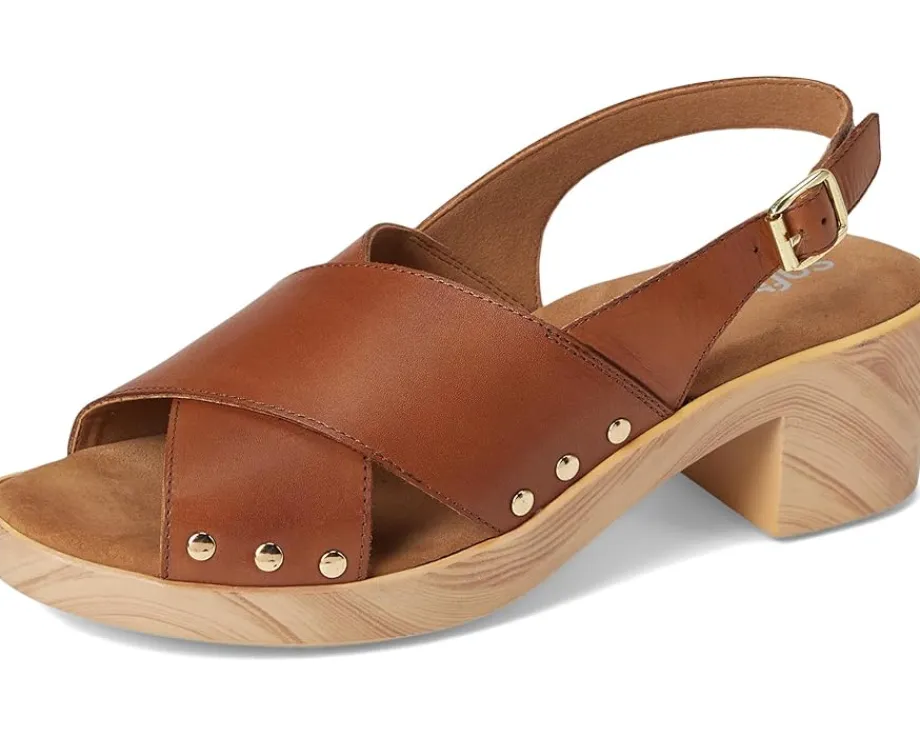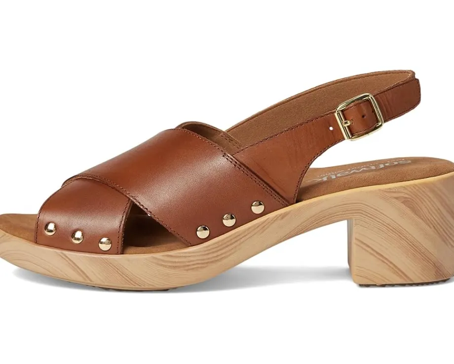 - Embrace the ease wearing the SoftWalk® Florence. Crafted from microfiber upper, leather lining, and footbed, this pair of sandals features open round toe, clog sole with a cross strap sling design that is adorned with chic stud details. The sole has the look of a wooden clog but is actually a lightweight polyurethane sole with rubber insert on the outsole for sure footing. The cushioned footbed is lined in soft suede leather and has arch support.