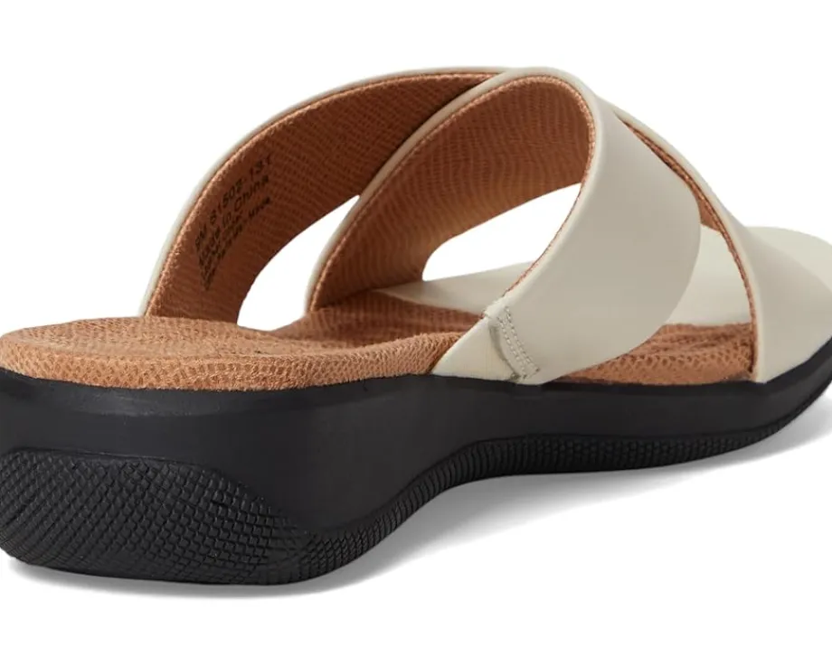 - Genuine leather upper features an open toe with crisscrossing straps.