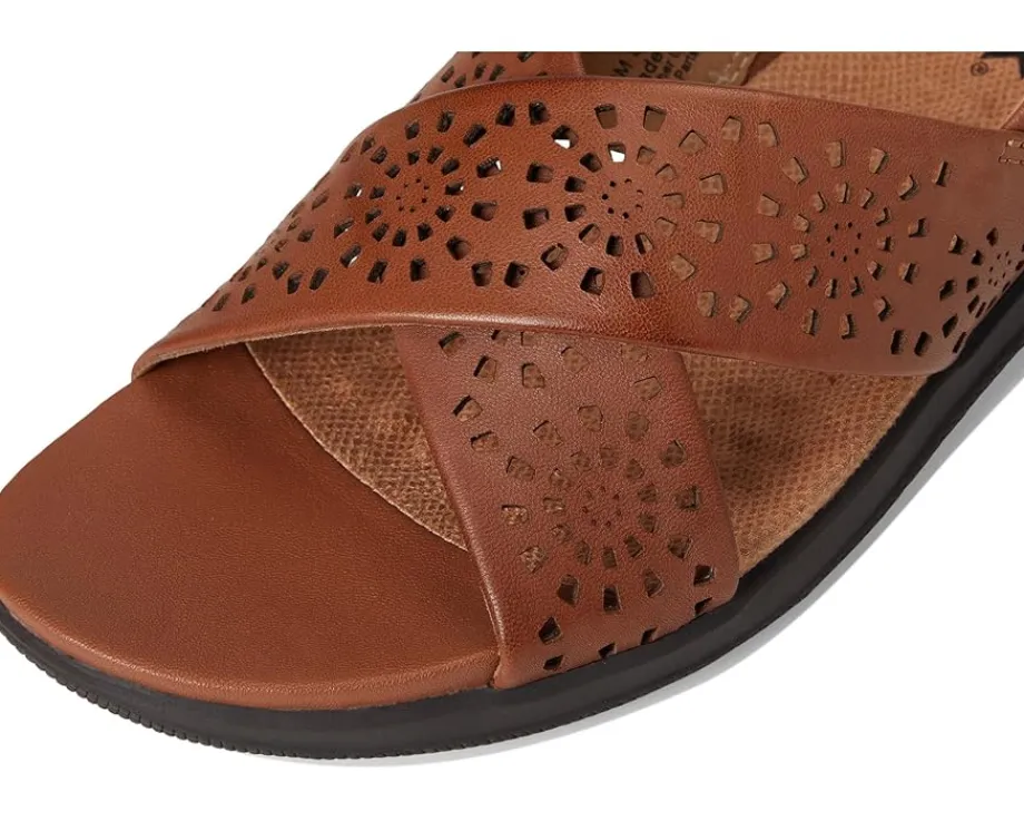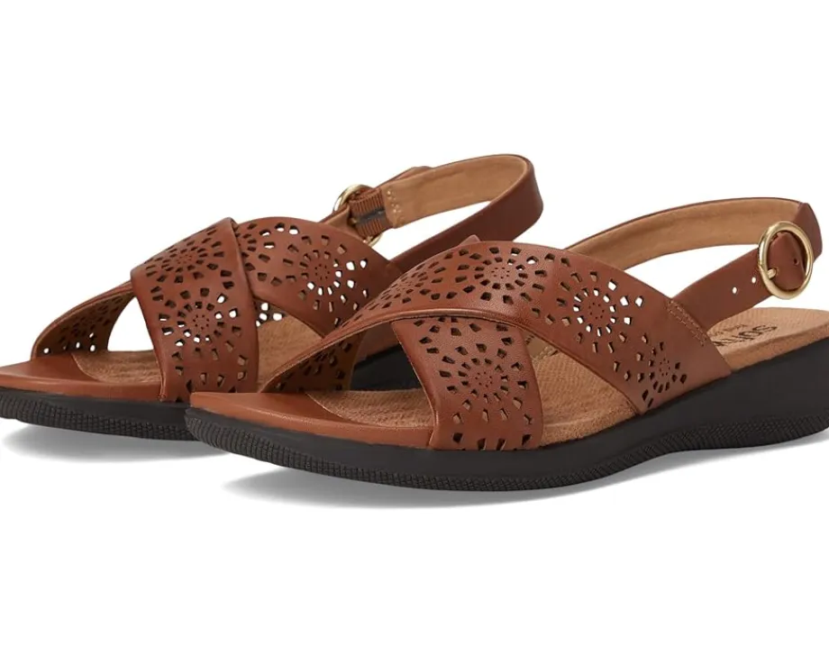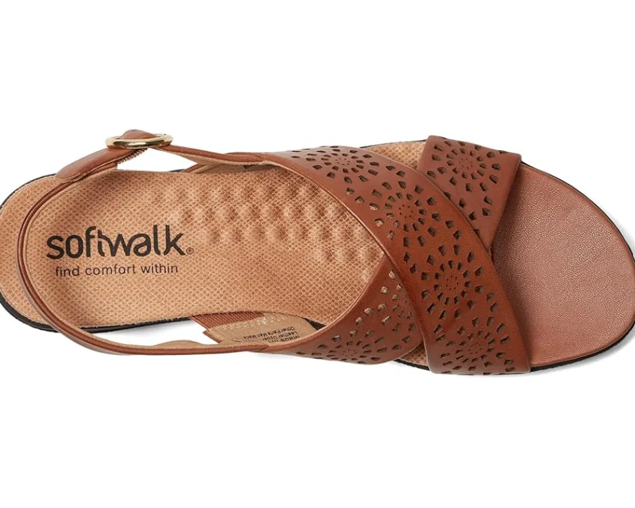 - Elevate your footwear collection with the Softwalk® Tillman Sling Perf Sandal, a perfect fusion of style, comfort, and functionality. Crafted from leather upper, lining, and insole, this pair of sandals features round toe, crisscross strap detailing on the vamp, adjustable strap with buckled closure, and low-block heel.