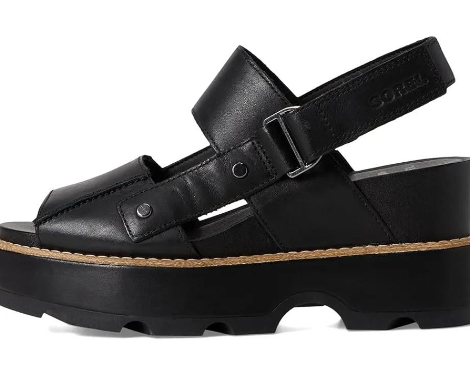 - The fit is it with the SOREL® Joanie™ IV Sandals Wedge. With adjustable leather straps, you can create your perfect fit so you can go from day to night, with no problem. Available in full-grain leather (CW 010, 246) or full-grain leather and suede (CW 084). Crafted from full-grain leather upper, synthetic lining, plush EVA foam footbed with synthetic topcover, and molded rubber outsole. The sandals feature adjustable ankle strap, textured synthetic wrapped midsole, and natural welt construction with stitch detail.