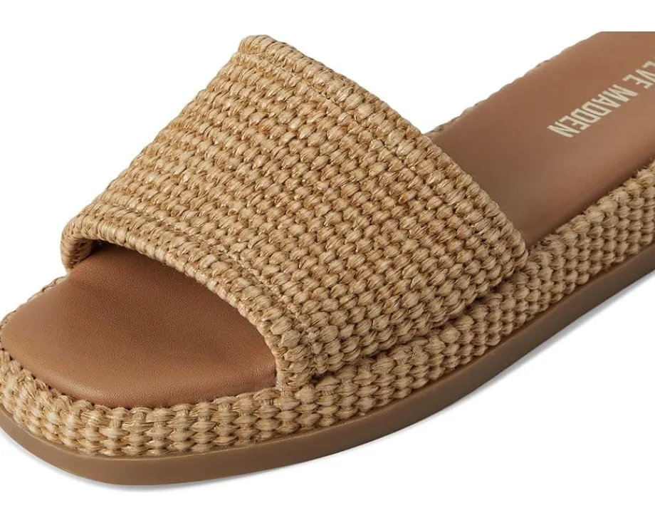 - The Steve Madden® Boardwalk sandals offer a comfortable slide design with a platform for added style. The open square toe adds a touch of sophistication. Perfect for any casual occasion, these slip-on sandals will elevate any outfit while keeping you comfortable all day. These come crafted with a cotton upper, synthetic rubber lining, and a comfortable rubber insole.