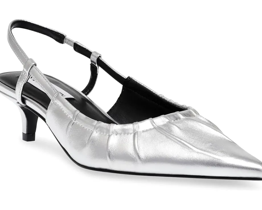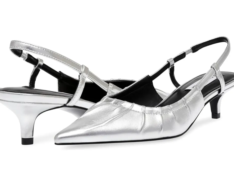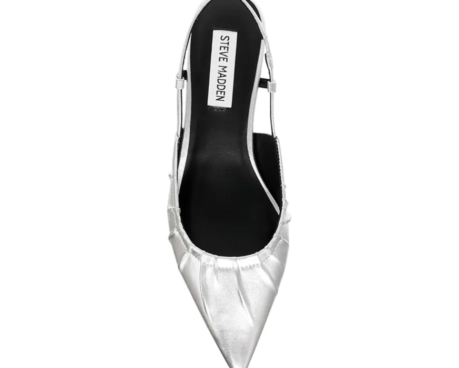 - Make every fashion moment an eye-catching evolution of style as you wear the Steve Madden® Syrie Pumps. The pointed toe pair features leather upper construction and an easy pull-on style with slingback strap closure. With a low-top silhouette, the pair has gathered pleats around the toe and open sides for a modern appeal.