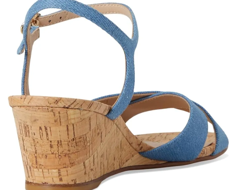 - Make a statement choosing the Stuart Weitzman® Dayna Demi Wedge heels. Crafted with stylish denim upper and luxe mestizo leather lining, these sandals are both fashionable and versatile. The leather insole offers premium comfort, while the open toe design adds a playful touch. Complete with wedge heels, these sandals will effortlessly elevate your look.
