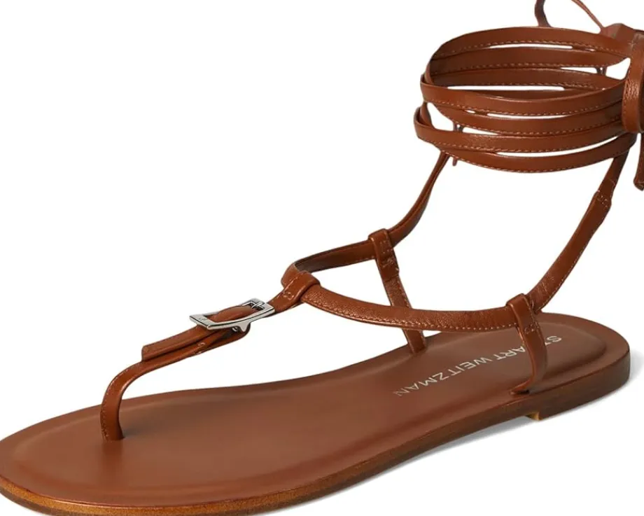 - Step out in effortless sophistication this warm weather season in the Stuart Weitzman® Georgie Lace-Up sandals. Crafted from a leather upper, these sandals feature a strappy lace-up with a tie closure, buckle detailing at the thong strap, round toe silhouette, leather lining, and leather insole.