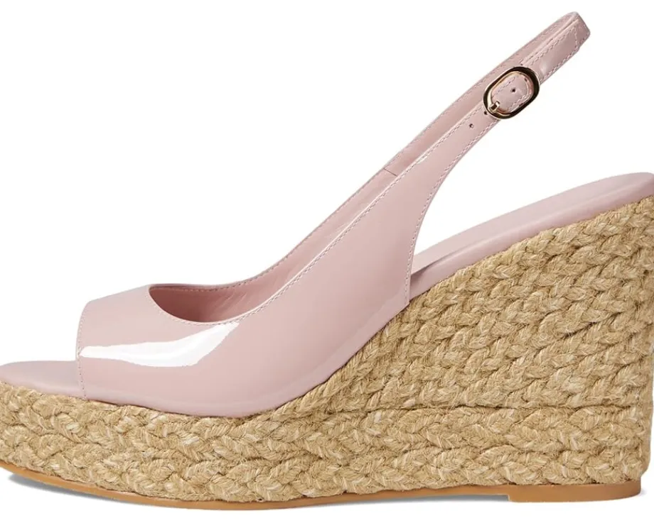 - The braided details wrapped around the Shine Stuart Weitzman® Island Peep-Toe Espadrille Wedge heels showcase a crafty and artistic appeal.