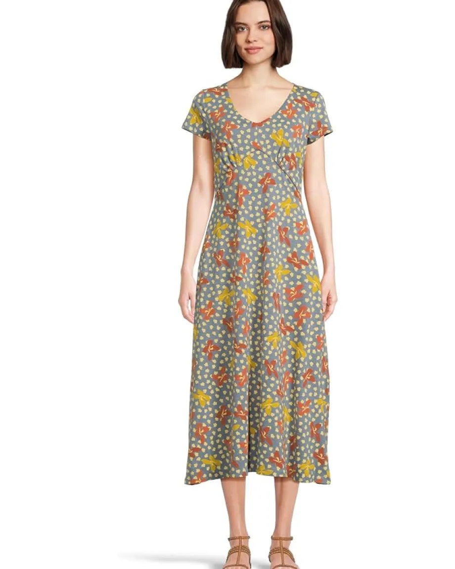 - Adorned with an allover floral print and a double-layer bodice, the Toad&Co® Rose Midi Short Sleeve Dress offers next-to-skin softness and the ability to hit the trails or hit the wine bar with equal ease. The A-line dress features a V-neckline, short sleeves, a back waist tie, on-seam hand pockets, and a midi-length silhouette.