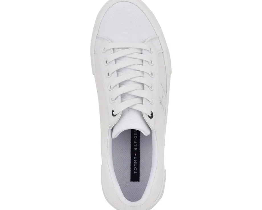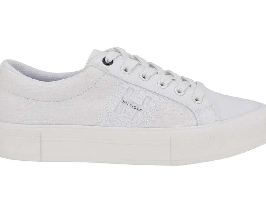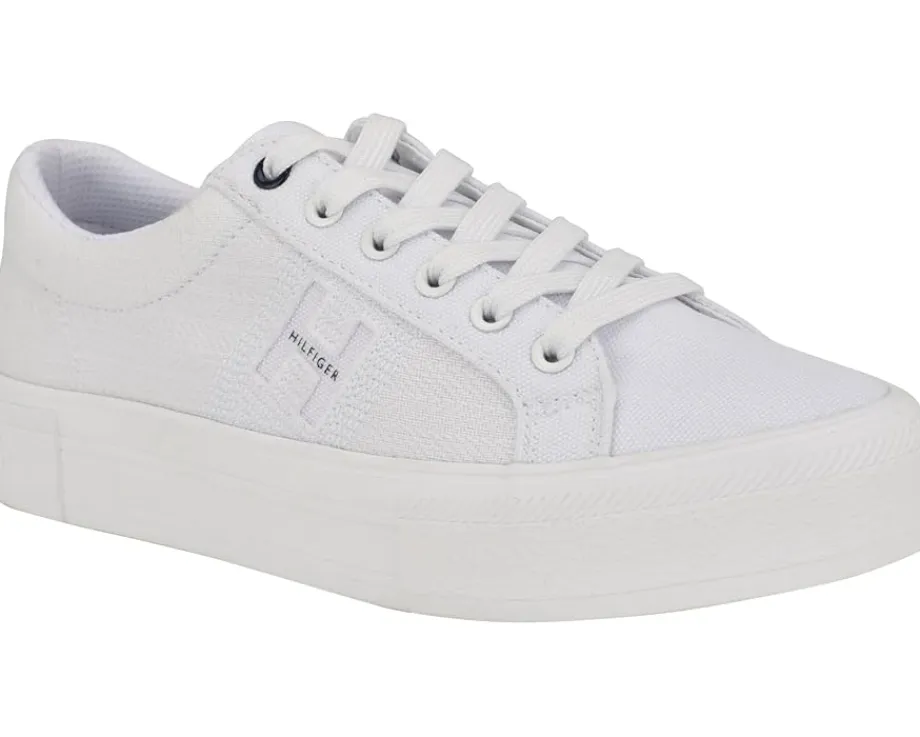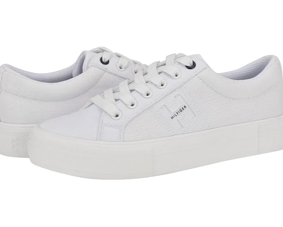 - A great addition to your shoe closet, the Tommy Hilfiger® Aconia sneaker has embossed branding detail along the lateral side for a leveled up look. With lace-up closure, the rounded toe pair has canvas upper construction and polyester lining for additional comfort.