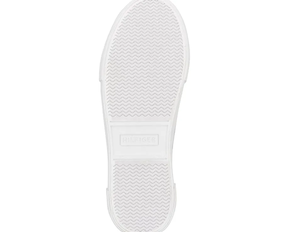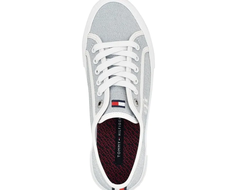 - Designed for comfort and style, the Tommy Hilfiger® Alezya are perfect addition to your sneaker collection. The slip-on style shoes have a lace-up closure, a round-toe design, and branded stacked TH logo woven into the fabric. The low top shoes have denim textile/faux leather upper, polyester textile lining, and foam footbed for added comfort during the prolonged wear.