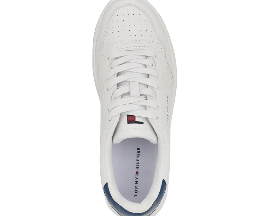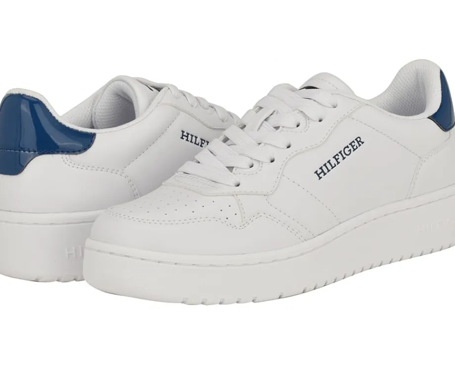 - Define the casual cool in your stunning look as you wear the Tommy Hilfiger® Tizzin Sneakers. The lace-up footwear features polyurethane upper construction with front perforation detail, contrasting heel counter, and round toe silhouette.
