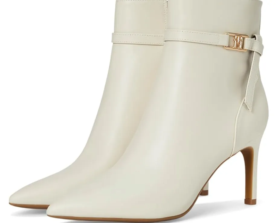 - The Tommy Hilfiger® Jorine with a delicate ankle strap and signature logo hardware emboldens a sleek dress bootie balanced by a pointy toe and tapered heel. Est. 1985, Tommy Hilfiger is a leading lifestyle brand celebrating the essence of American style.