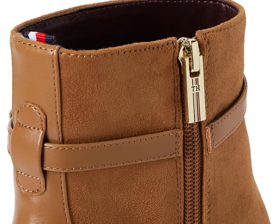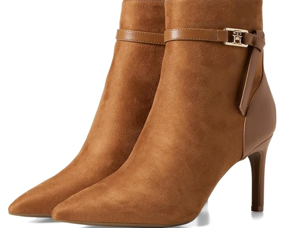 - The Tommy Hilfiger® TWJORINE2-DRE01 with a delicate ankle strap and signature logo hardware emboldens a sleek dress bootie balanced by a pointy toe and tapered heel. These stylish boots feature chic faux suede upper and smooth polyester lining for all-day comfort. With leather insole and trendy stiletto heels, you’ll feel both stylish and supported from day to night. Est. 1985, Tommy Hilfiger is a leading lifestyle brand celebrating the essence of American style.