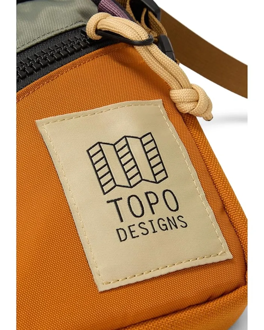 - Topo Designs® Mini Shoulder Bag has excellent daily utility, and the weight savings and durability you’ll appreciate while adventuring and traveling.