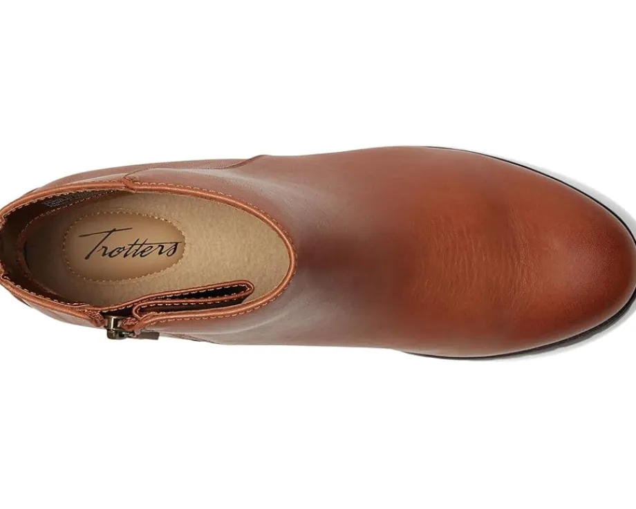 - The Trotters® Margo boots offer simple and clean styling with a waterproof soft supper leather upper and a lug rubber outsole for comfortable walking. These ankle boots feature a zippered side closure for easy on and off and the interior is lined in polyester and has a removable cushioned memory foam footbed with arch support. These heeled leather boots keep your feet comfortable, dry, and protected.