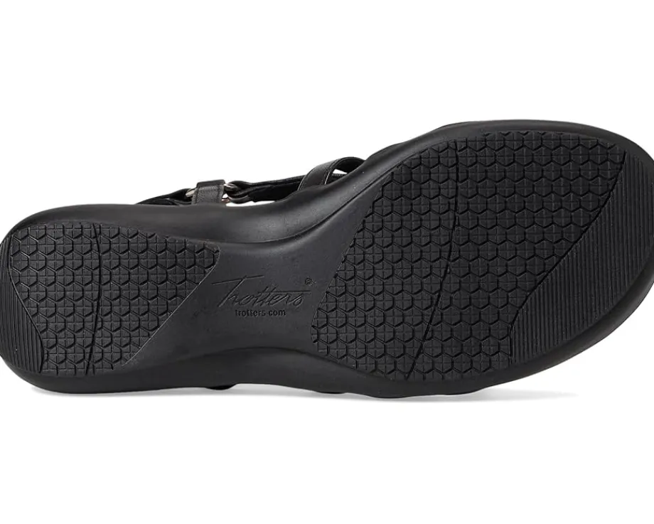 - Discover the perfect blend of style and functionality with the Trotters® Ria wedge sandal. Expertly crafted from premium leather, this sandal features convenient front and back hook-and-loop closures, offering a secure and customizable fit.