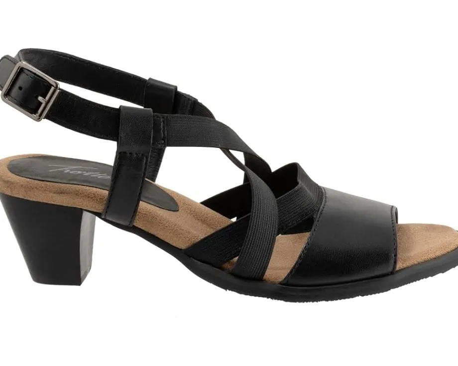 - Let your feet flourish in joy and wonder wearing the lightweight Trotters® Meadow Flat Sandals. The almond toe pair features soft leather upper construction with cross stretch straps, elastic v-gore, and buckle adjustable slingback strap closure.