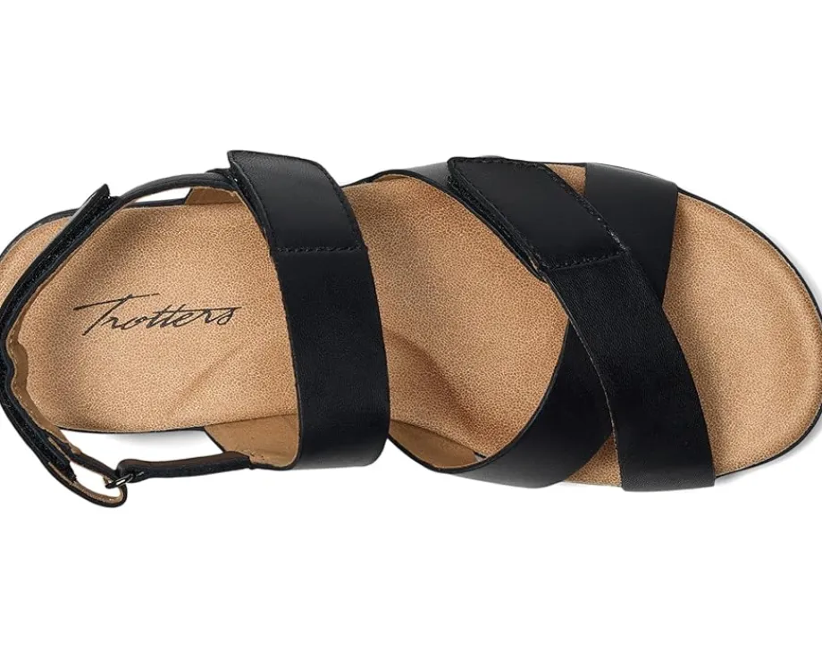 - Designed with criss-cross straps and an adjustable ankle strap with hook-and-loop closure, the Trotters® River sandals are the perfect choice to pair with your casual looks and outfits. The leather upper, memory foam with molded EVA footbed, and leather lining offer a comfortable walking experience. Lightweight and breathable, these leather flats are easy to slip on and off. Get ready for a comfortable day out wearing these flat sandals.