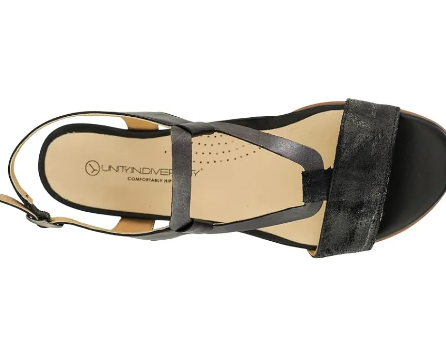 - Reach new heights in the chic and stylish Unity in Diversity® Charming strappy sandal. Open round toe, with ankle strap and buckle for adjustable fit.
