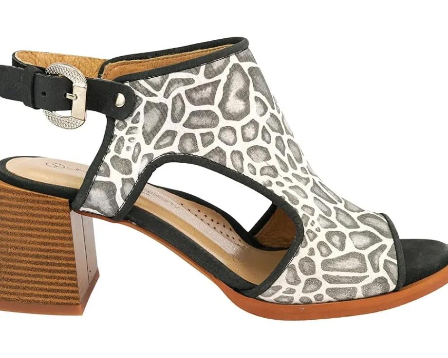 - Open toe and stacked block heel.