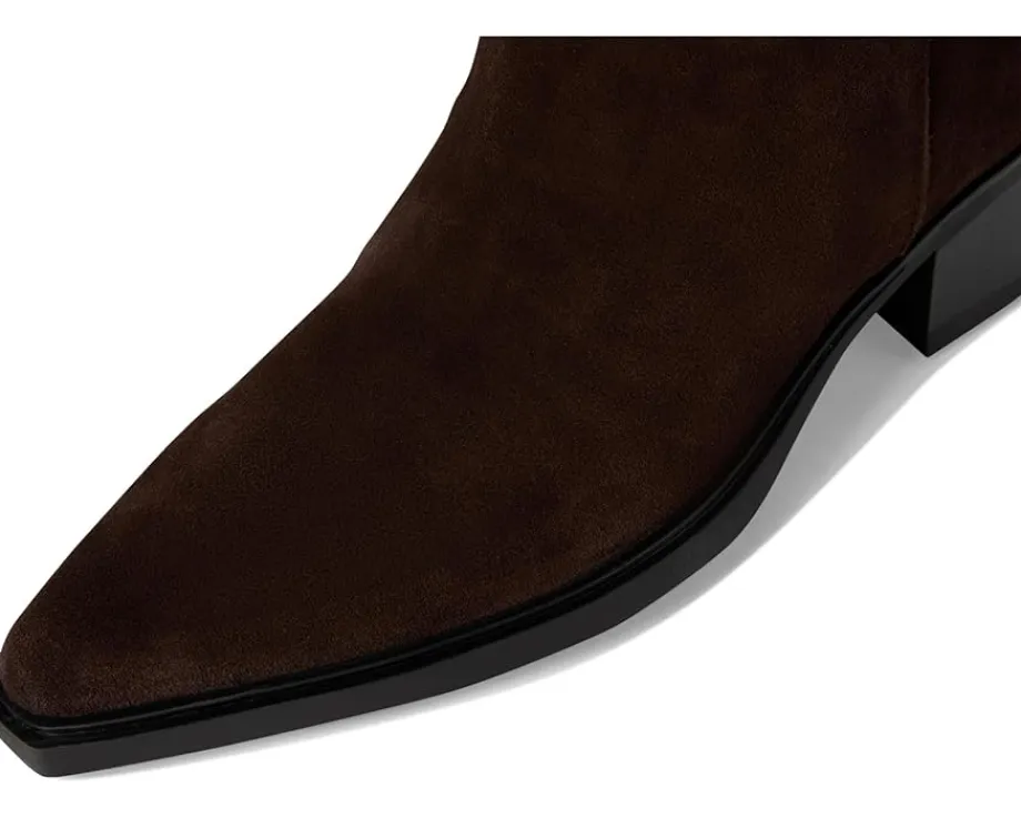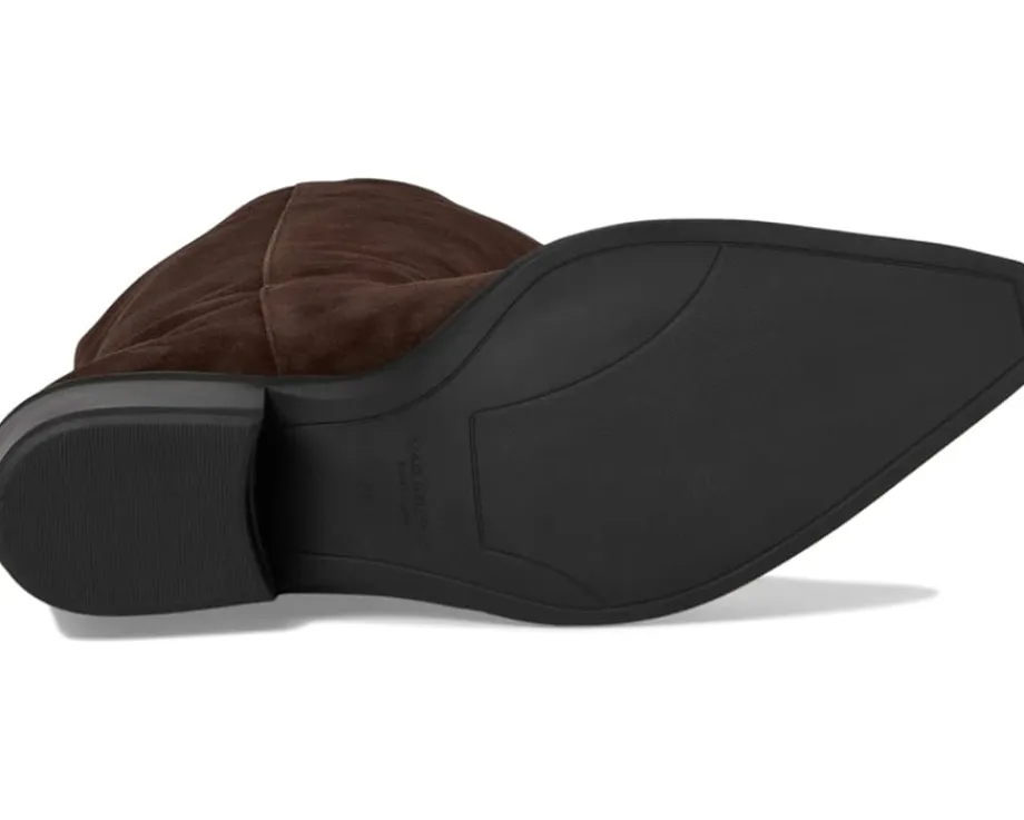 - Kelsey is the minimalistic tall boots with a western-inspired aesthetic. The knee-high style is crafted from suede and features a pointed-toe shape, pull-on shaft and decorative seams. The sleek block heels measure 40mm.