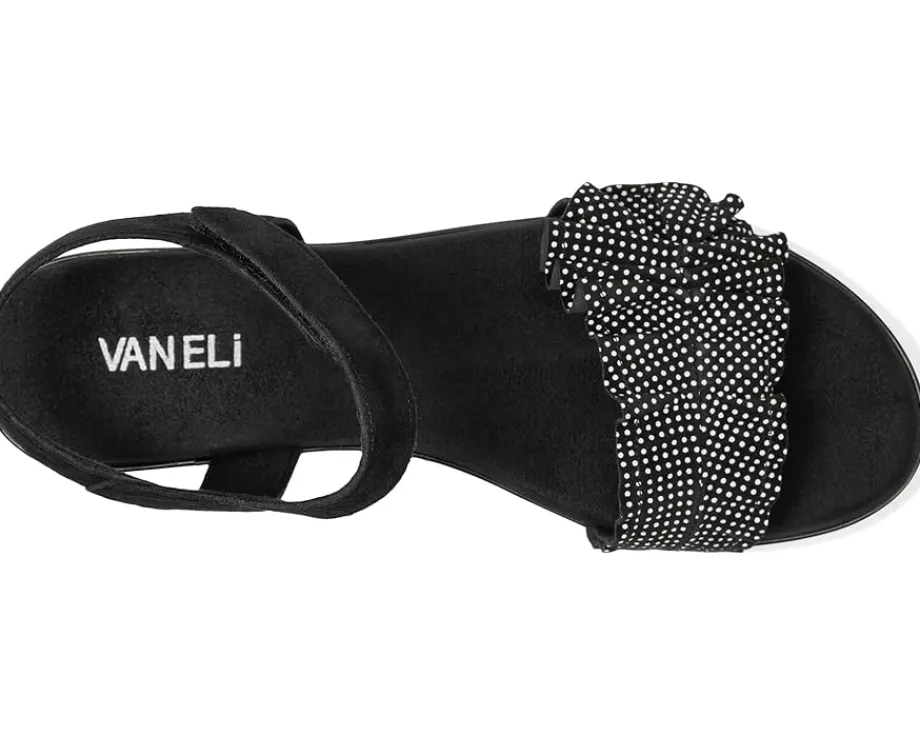 - The Vaneli® Elsbet sandal features ruffle-strap detailing and a hook-and-loop closure, ensuring a secure and adjustable fit. The hidden elastic insert under the buckle adds extra comfort, while the padded insole provides cushioning for all-day wear.