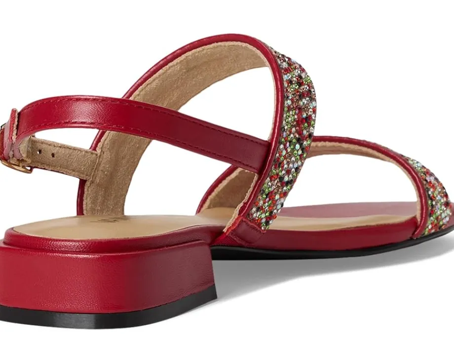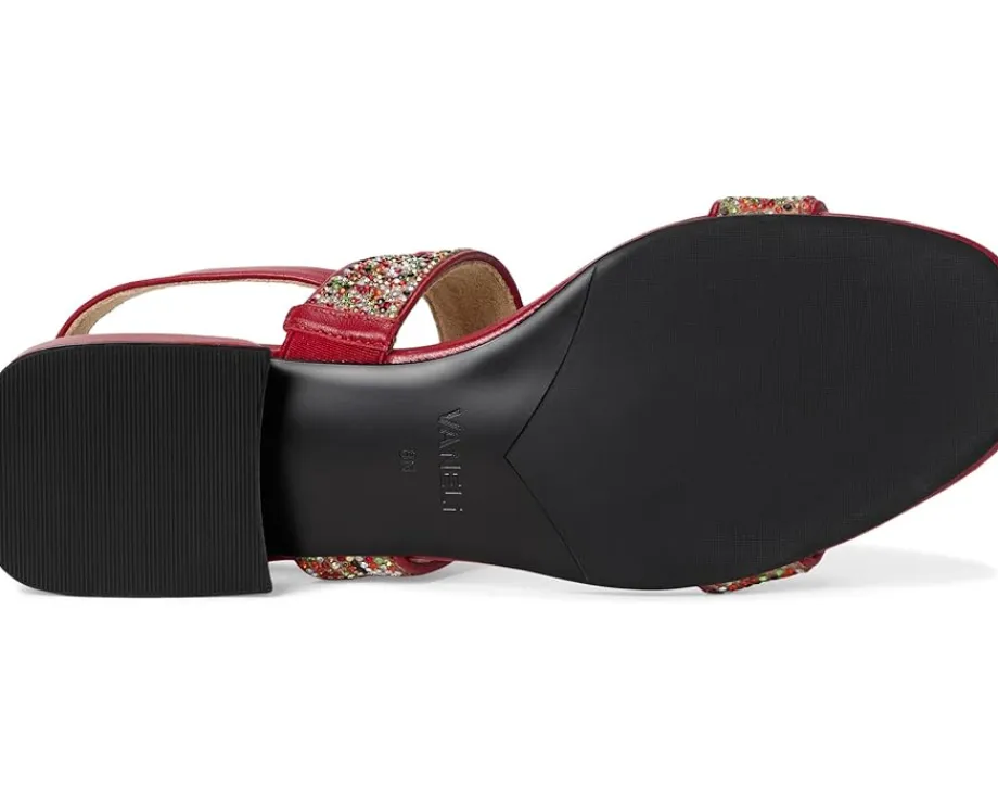 - The Vaneli® Emmey sandals feature multi-rhinestone studded straps, adding a touch of sparkle to any outfit. The buckle closure with a hidden elastic insert ensures a secure and flexible fit, while the padded leather insole provides all-day comfort.