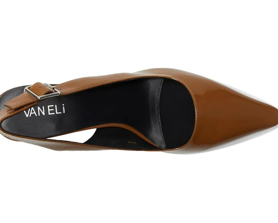 - The Vaneli® Patti Pumps are made with the finest materials and are made to be comfortable and fashionable! The slip-on style heels come with a leather upper, leather lining, and a cushioned rubber insole. The adjustable backstrap with buckle closure ensures a secure fit and the kitten heel adds height to your look.