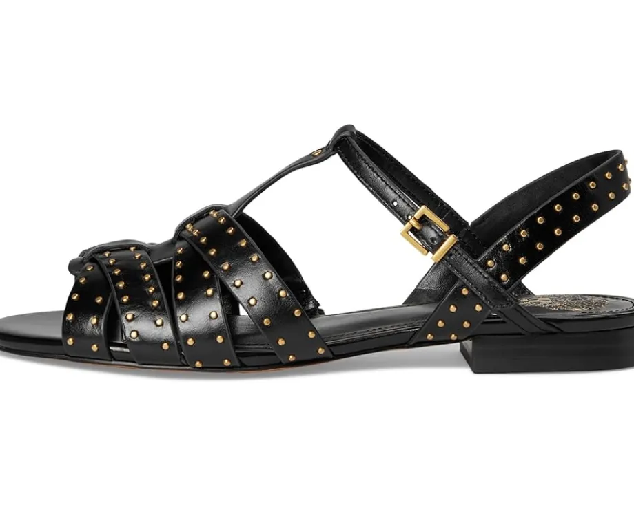- Add a feminine touch to your look with the Vince Camuto® Chaya Studded Gladiator Flat Sandals. The pair is delicately detailed with pinhead studs for a subtle yet stylish flair. The slingback strap and buckle closure on the instep strap ensure a secure fit, while the stacked block heel gives you the perfect amount of lift without sacrificing comfort. Featuring a rounded toe and a padded sock, this sandal is flirty, versatile, and perfect for all ages.